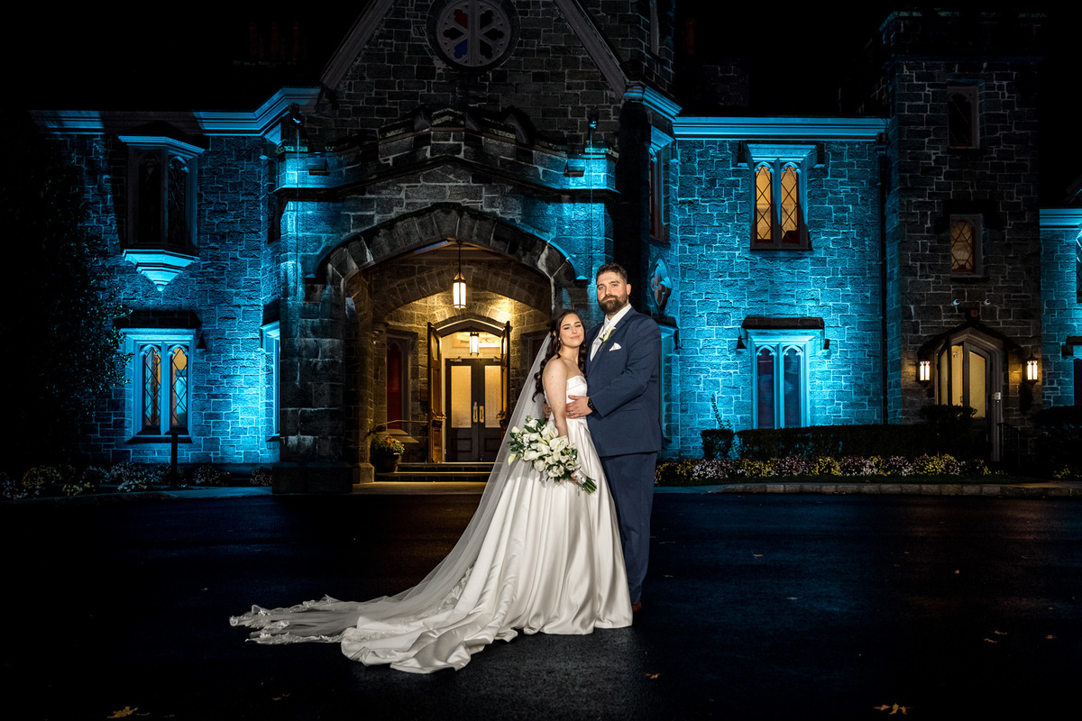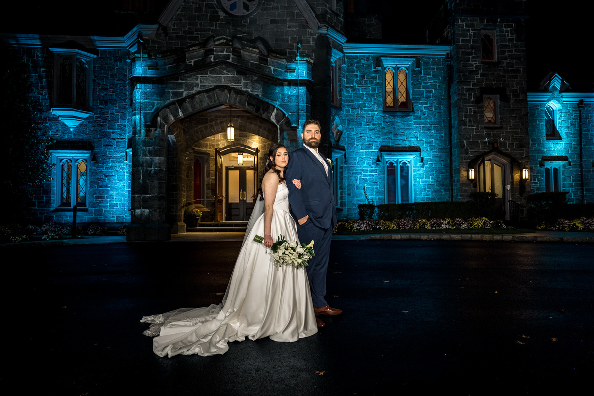 While the party raged inside, the real magic happened when we stepped out into the "blue light." The castle looked majestic against the deep twilight sky, creating a dramatic, cinematic backdrop that perfectly contrasted with the warmth of the celebration. It is creative moments like these that make capturing love stories so rewarding.